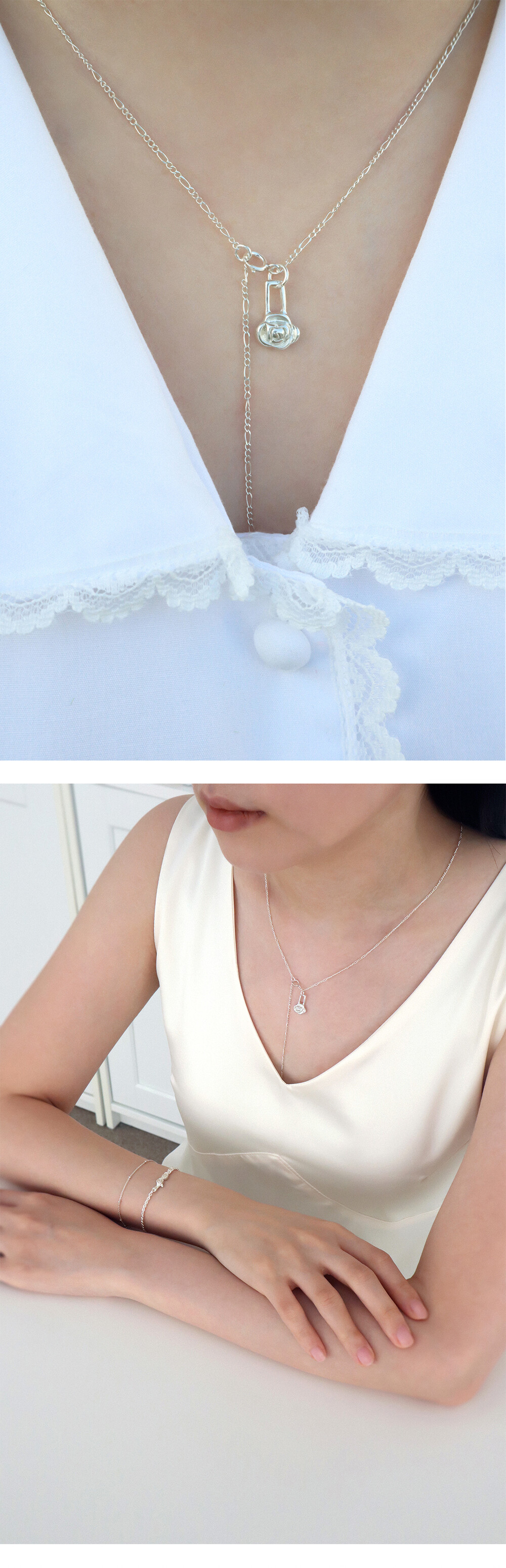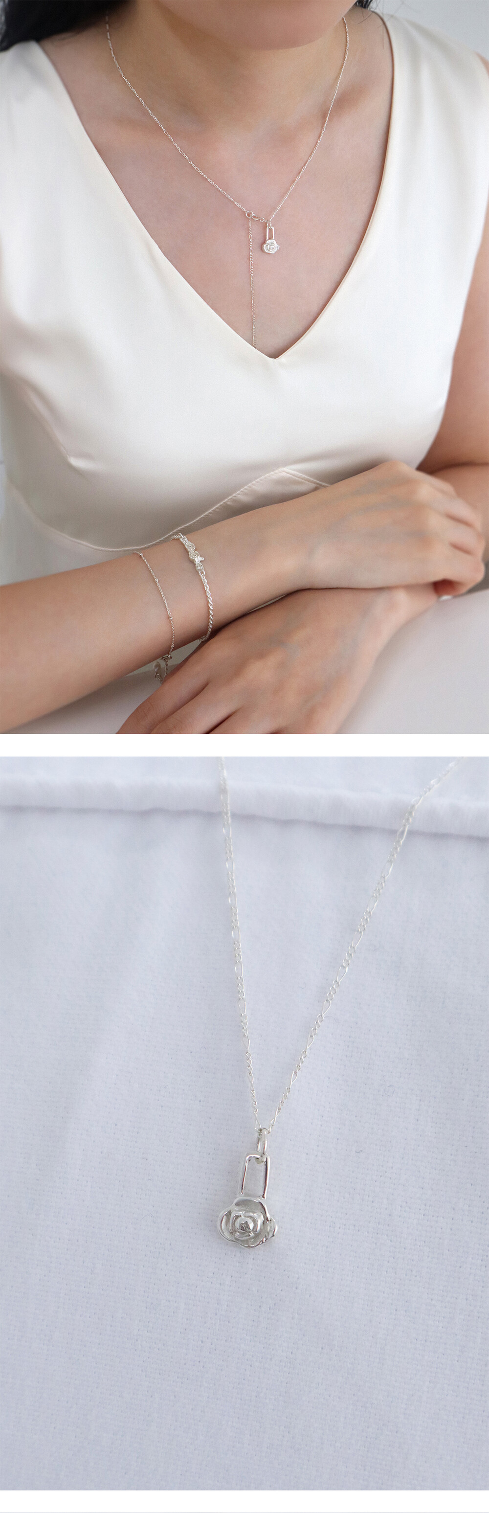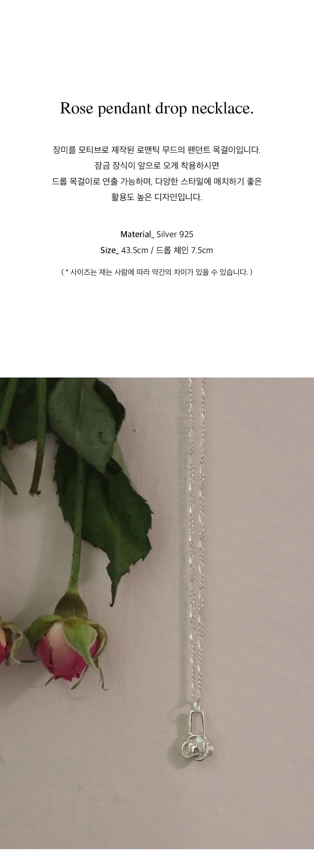 [ Silver925 ] Rose pendant drop necklace