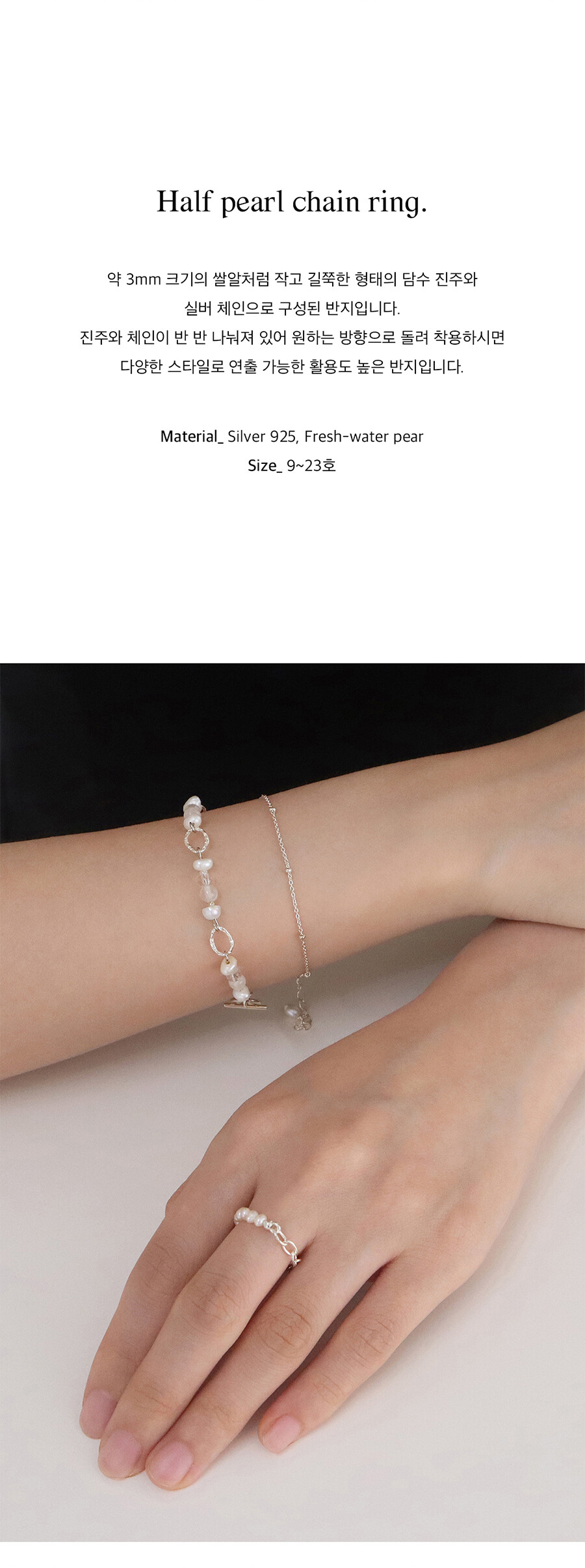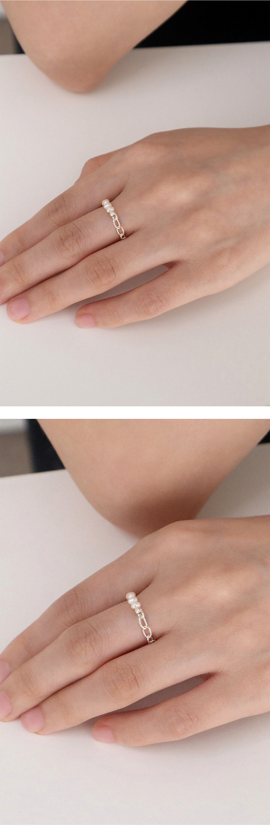[ Silver925 ] Half pearl chain ring
